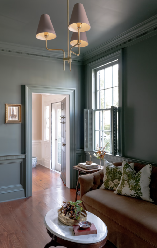 Let’s start with one of my favorites—monochromatic rooms, also known as “color dredging.” This approach challenges the idea that ceilings and trim must be white or that wall colors should stand alone. While every space has its own “rights” and “wrongs,” this technique is one for the books. Fully wrapping a room in a single color palette can create a bold, stand-alone statement or a seamless flow throughout your entire home. It’s a simple yet impactful way to elevate your space and be intentional with color. Plus, a strong anchor color gives you the perfect foundation to get creative with fixtures, rugs, furniture, artwork, patterns, and materials.